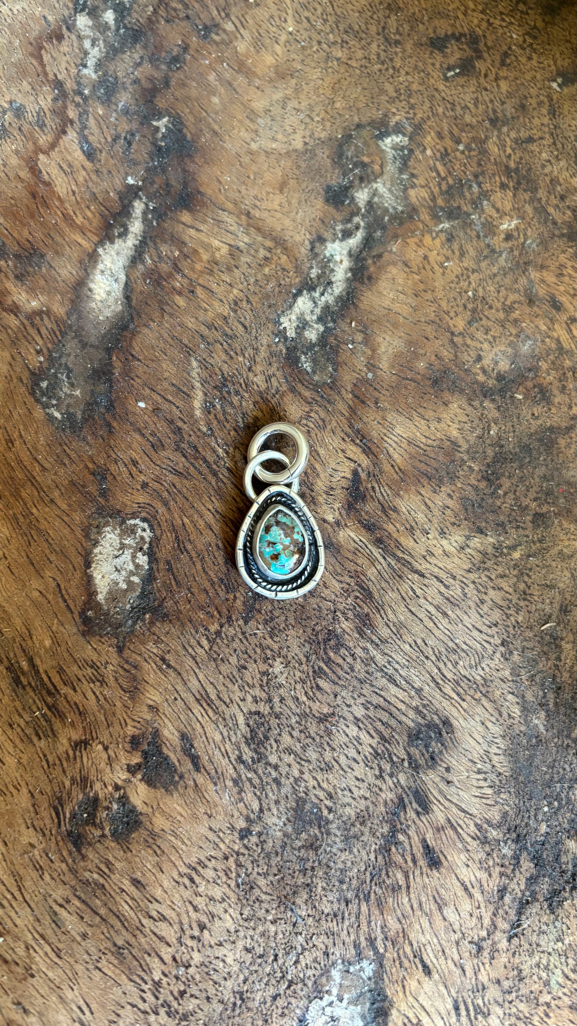 Turquoise set in sterling silver. Ready to add to your necklace or charm bracelets Has an antique finish