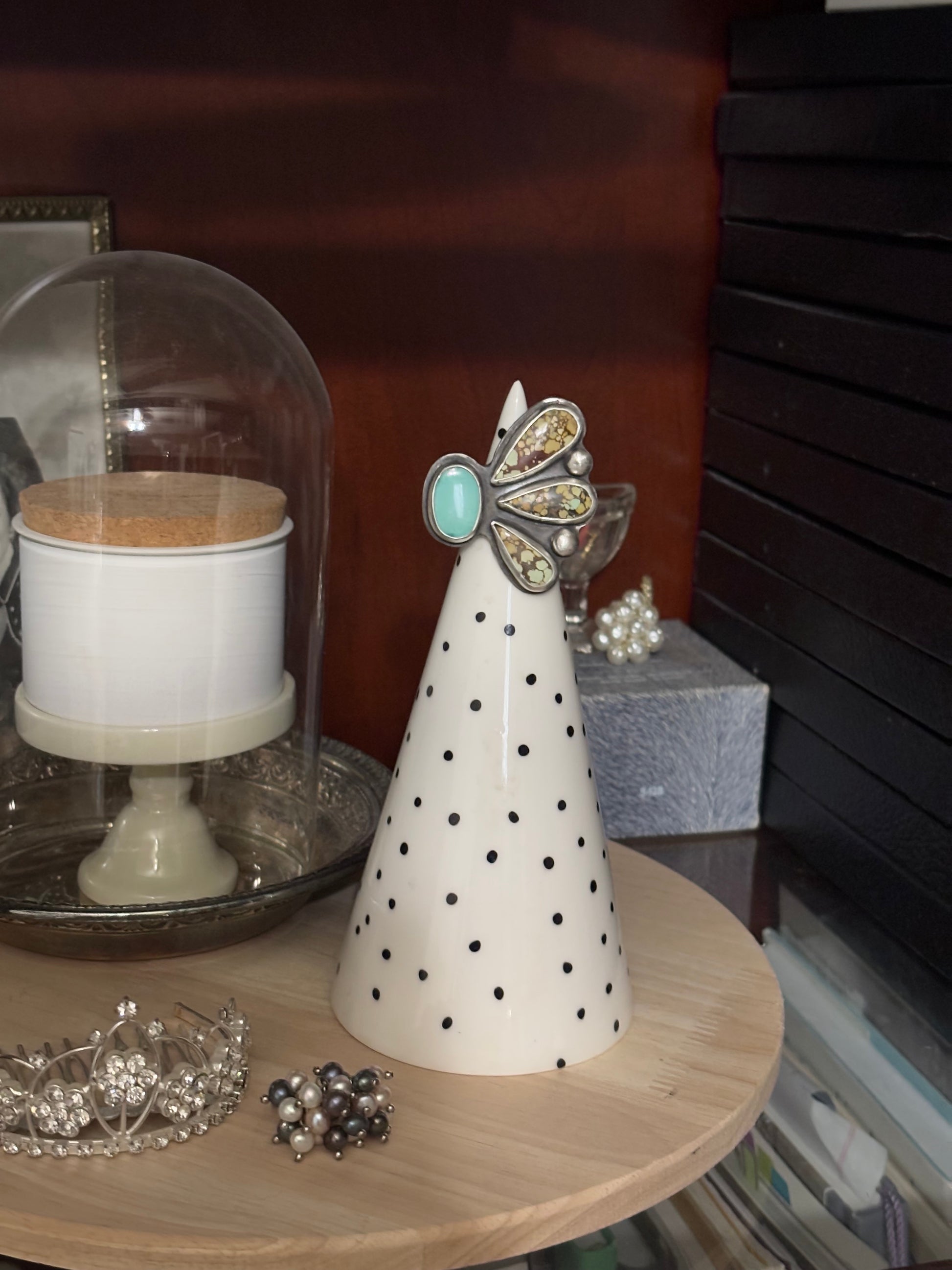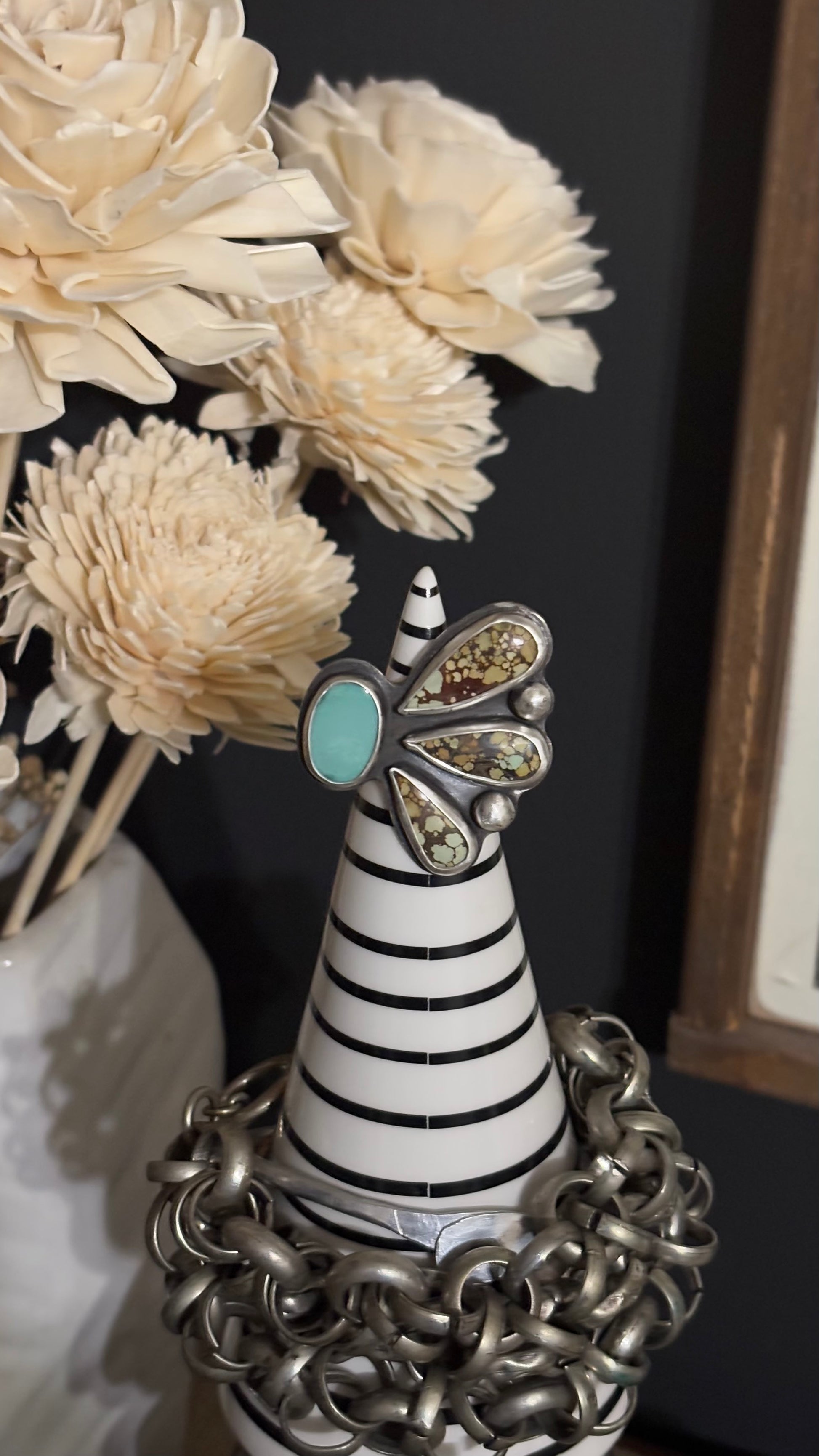Compass mine turquoise ad Hubei turquoise set in sterling silver and antiqued. Definitely a statement piece