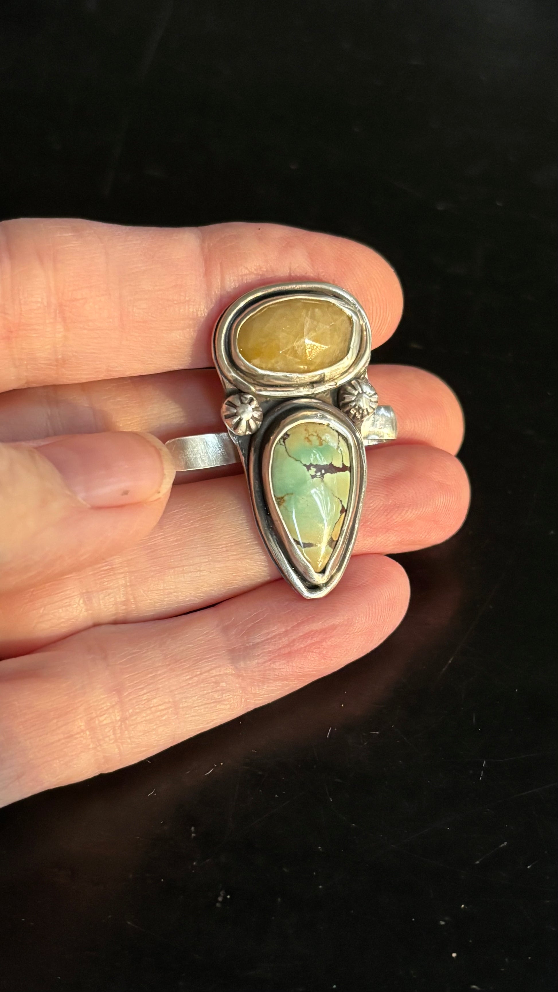 Sterling silver hat clip set with turquoise and caramel sapphire