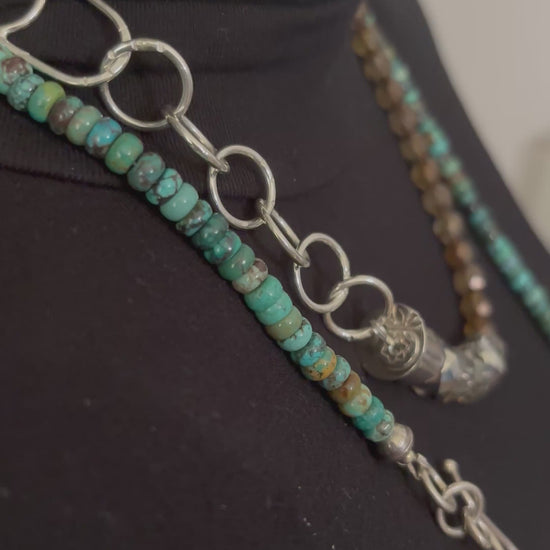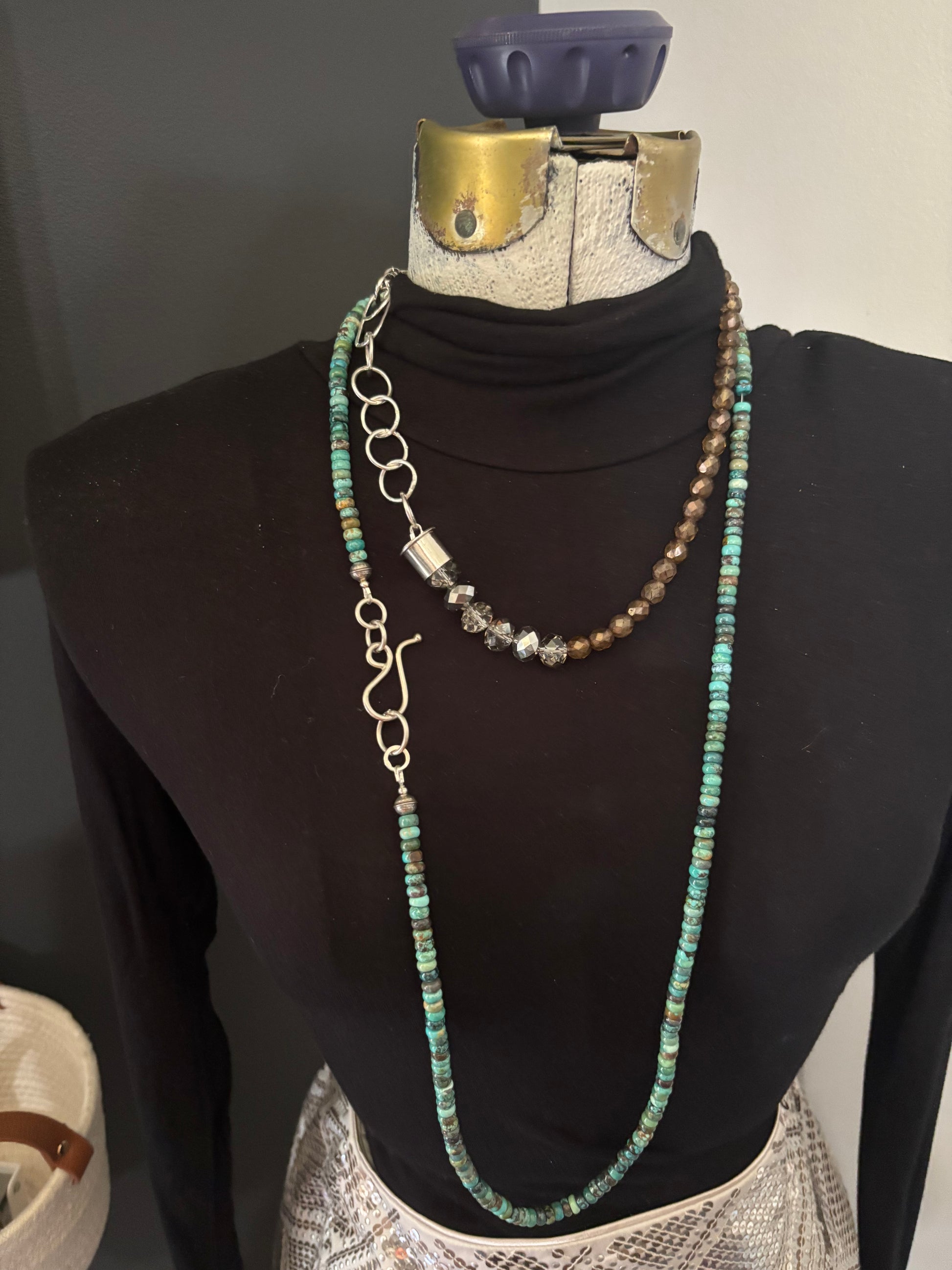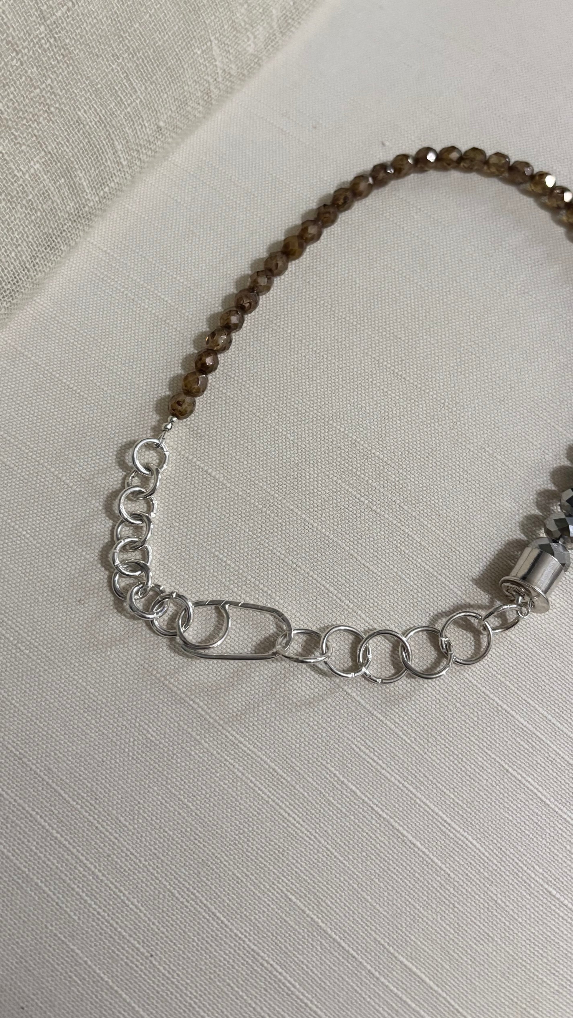 These beautiful beads shine in the light. Topaz colors with handcrafted sterling silver chain and bead cap and S hook that can hold charms