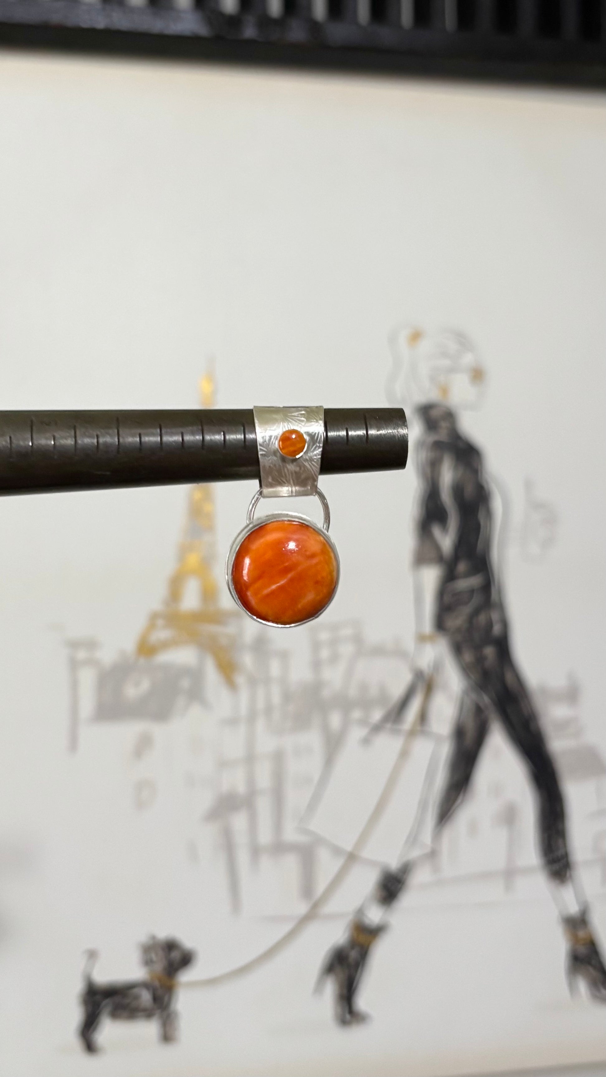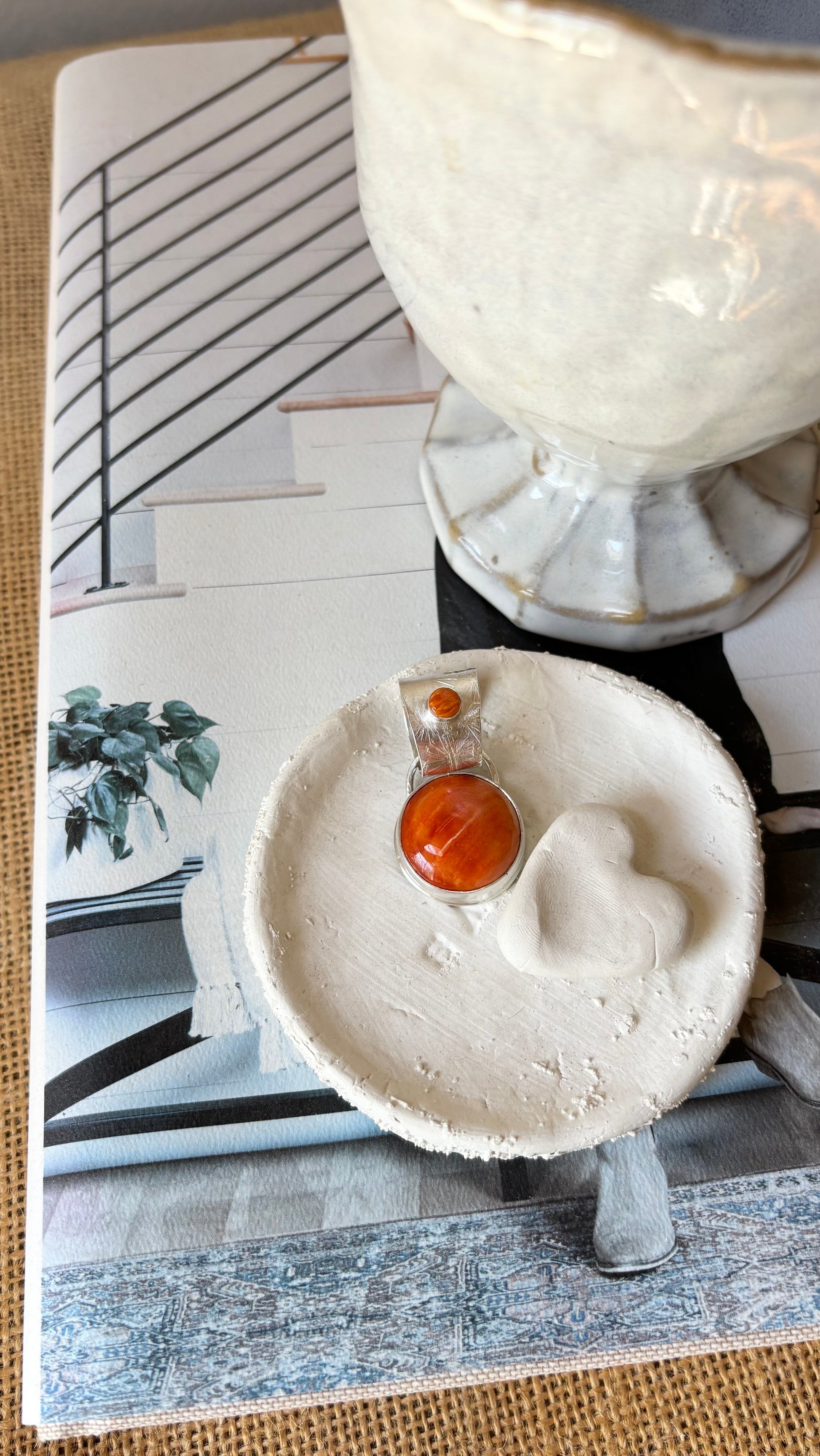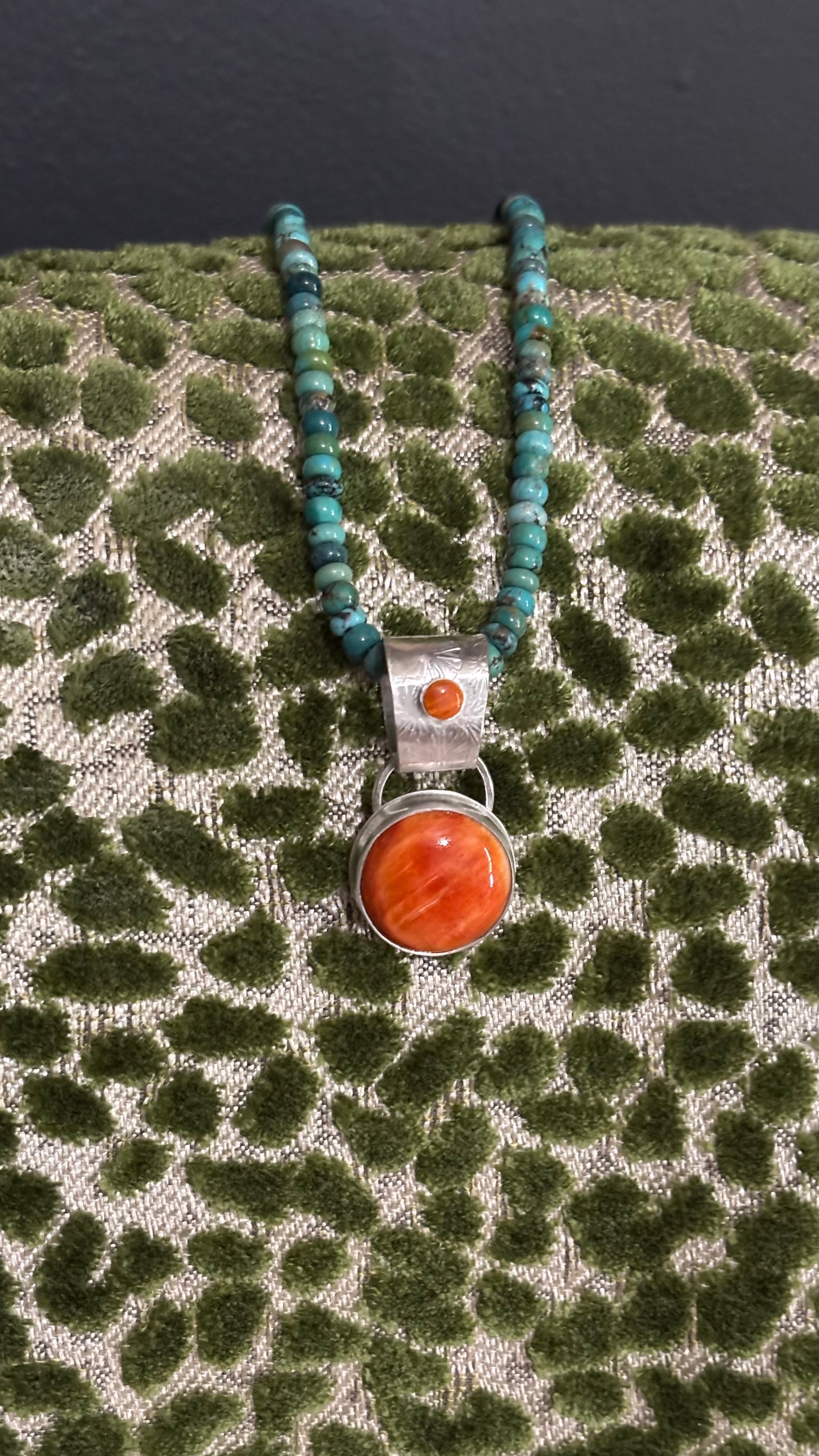 Spiny oyster set in sterling silver Pendant fits over your beaded necklaces Stone is a little smaller than a quarter