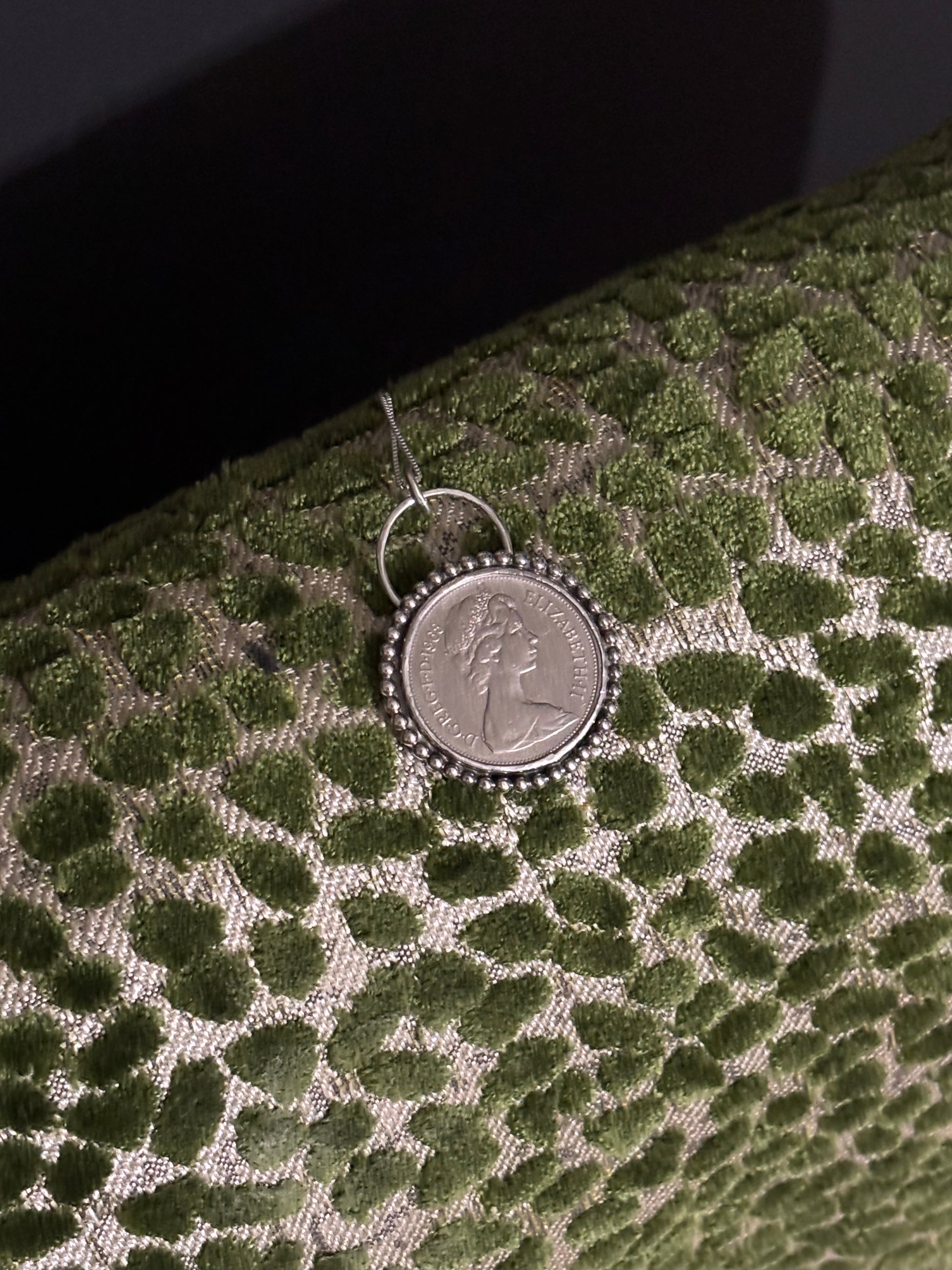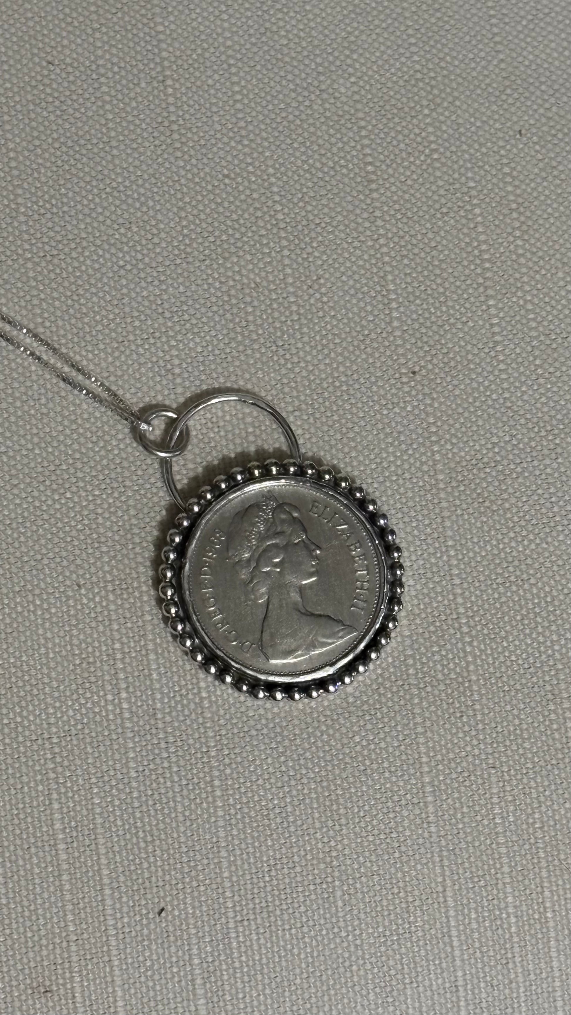 1968 Elizabeth II coin set in Sterling silver with a beaded border