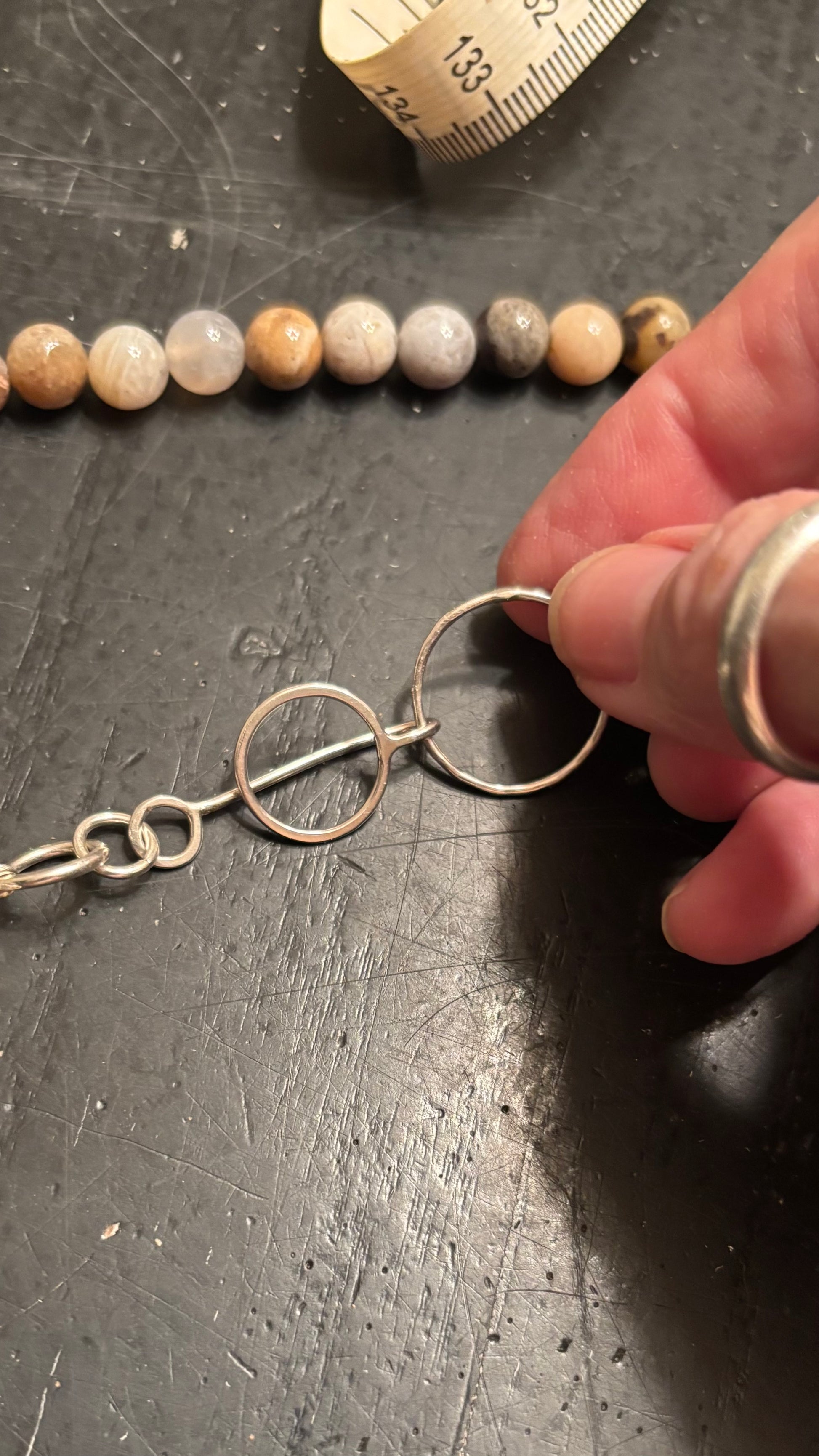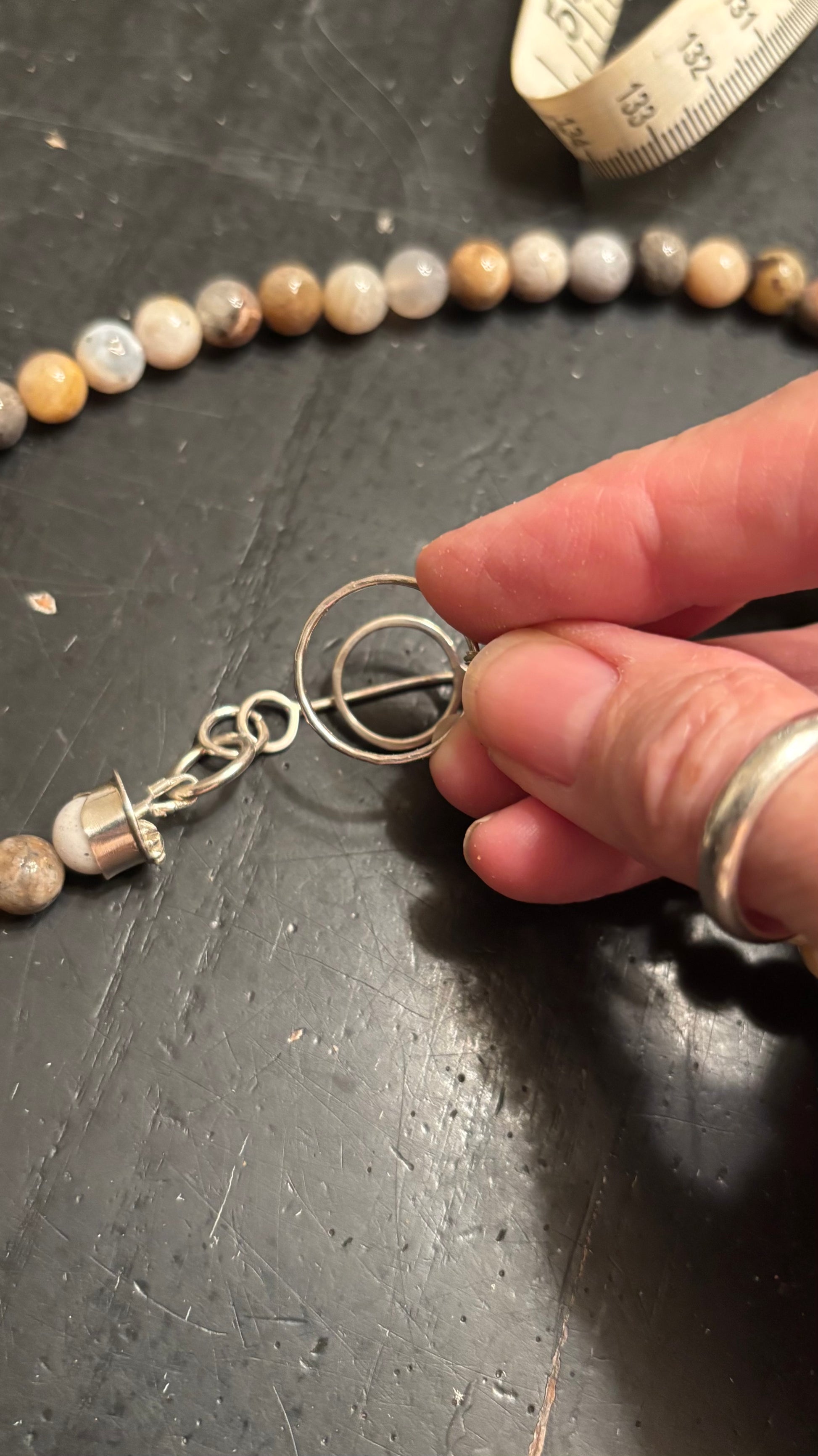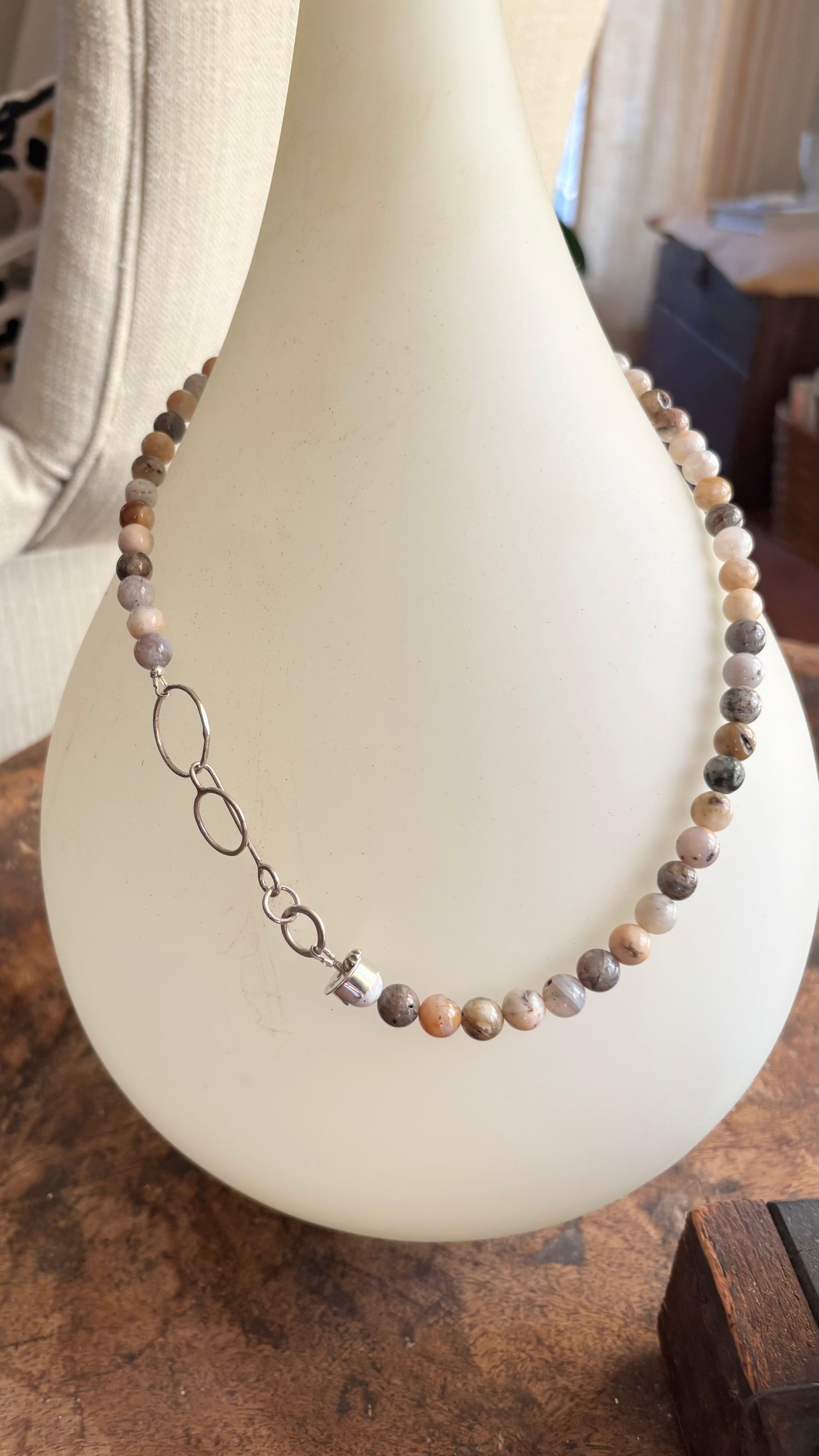 This agate beaded necklace features agate stones and a unique handcrafted closure. Each bead has its own natural variations, making every necklace one-of-a-kind. Designed to be both earthy and elegant, it’s perfect for everyday wear or layering with other jewelry. Durable, lightweight, and made by hand with care.