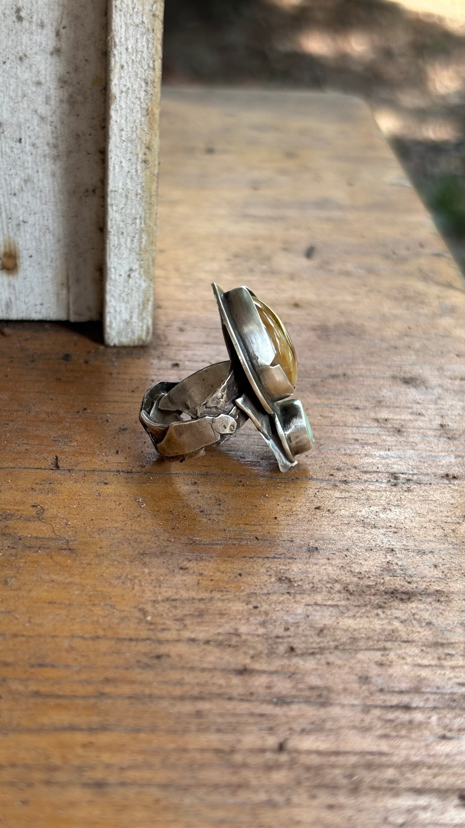 This ring has a combination of agate stone and turquoise and is set in sterling silver